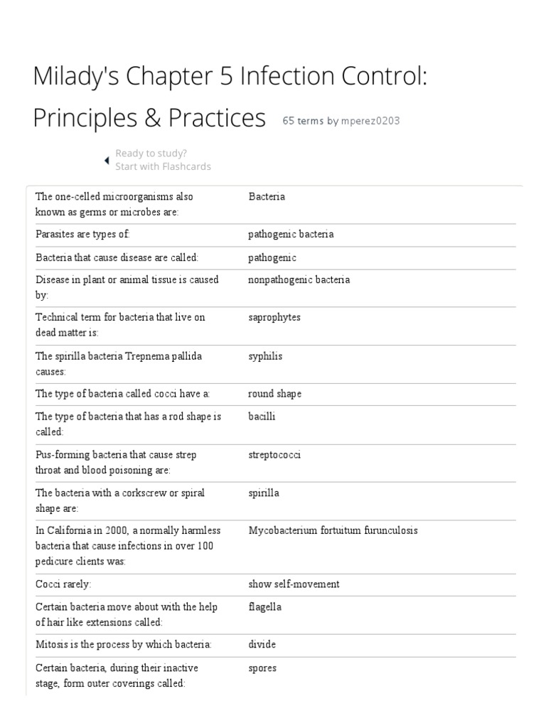 Milady S Chapter 5 Infec Es Flashcards Quizlet Pdf Disinfectant Infection